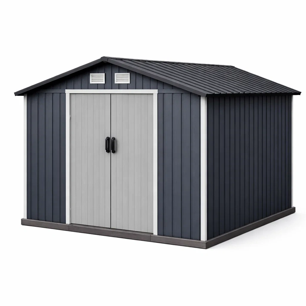 Abri de Jardin en Métal Gris Anthracite avec Portes Doubles