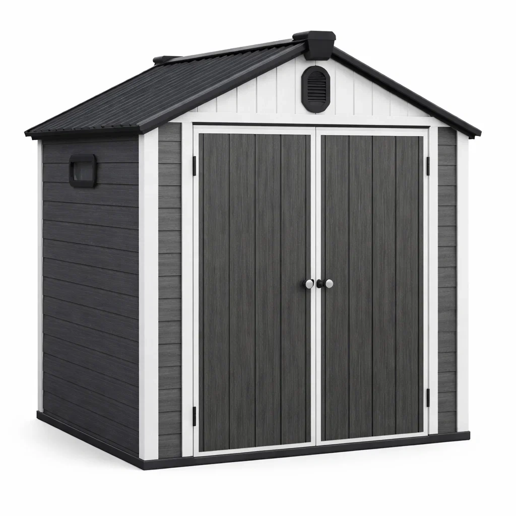 Abri de jardin en résine gris et blanc 185x152x226 cm