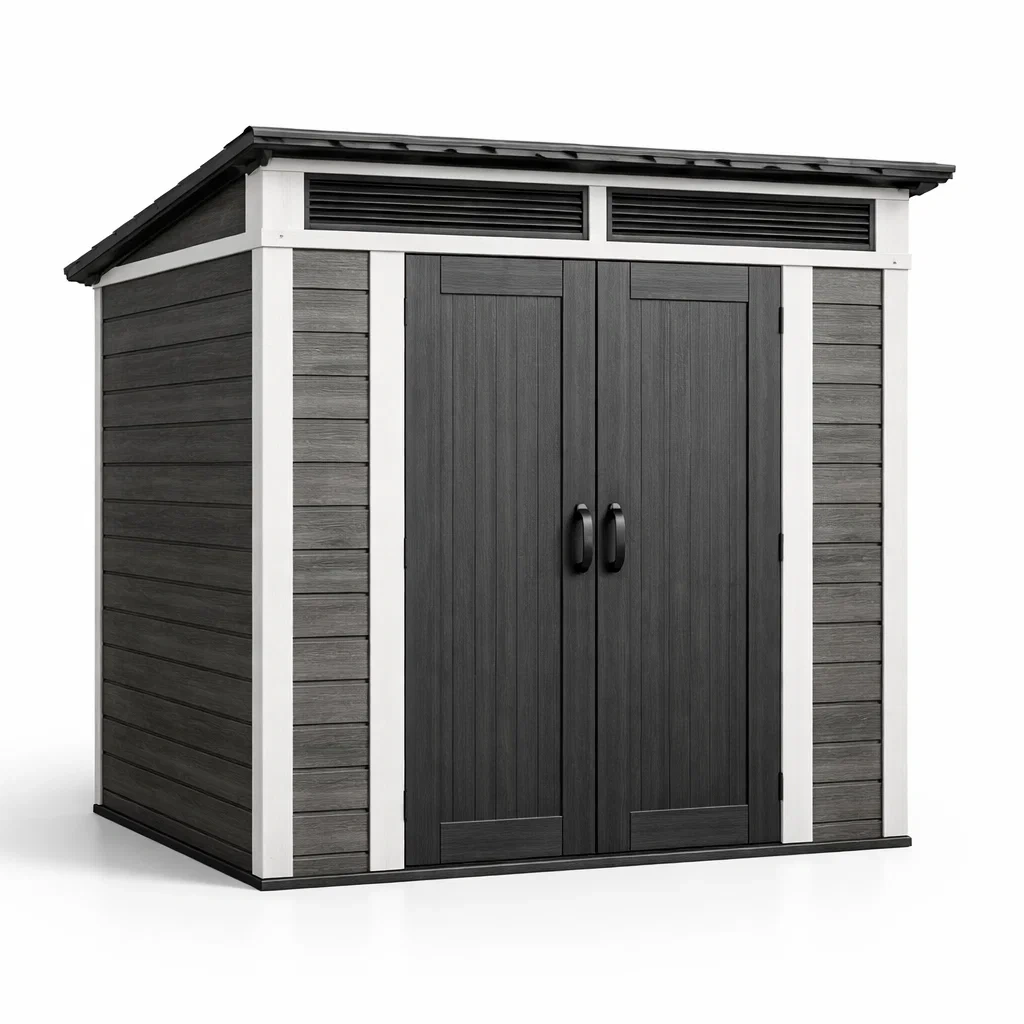 Abri de Jardin en Résine avec Double Porte Gris/Noir