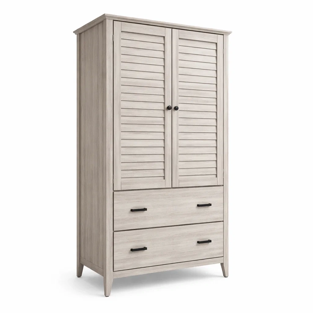 Armoire en bois avec portes à lattes et tiroirs