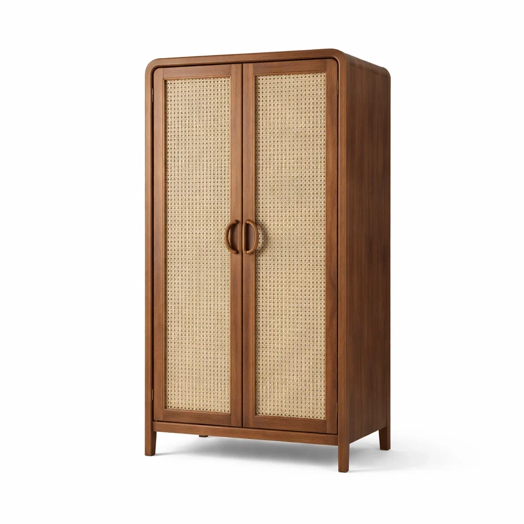 Matériaux : Structure en bois massif, portes en rotin naturel tressé.