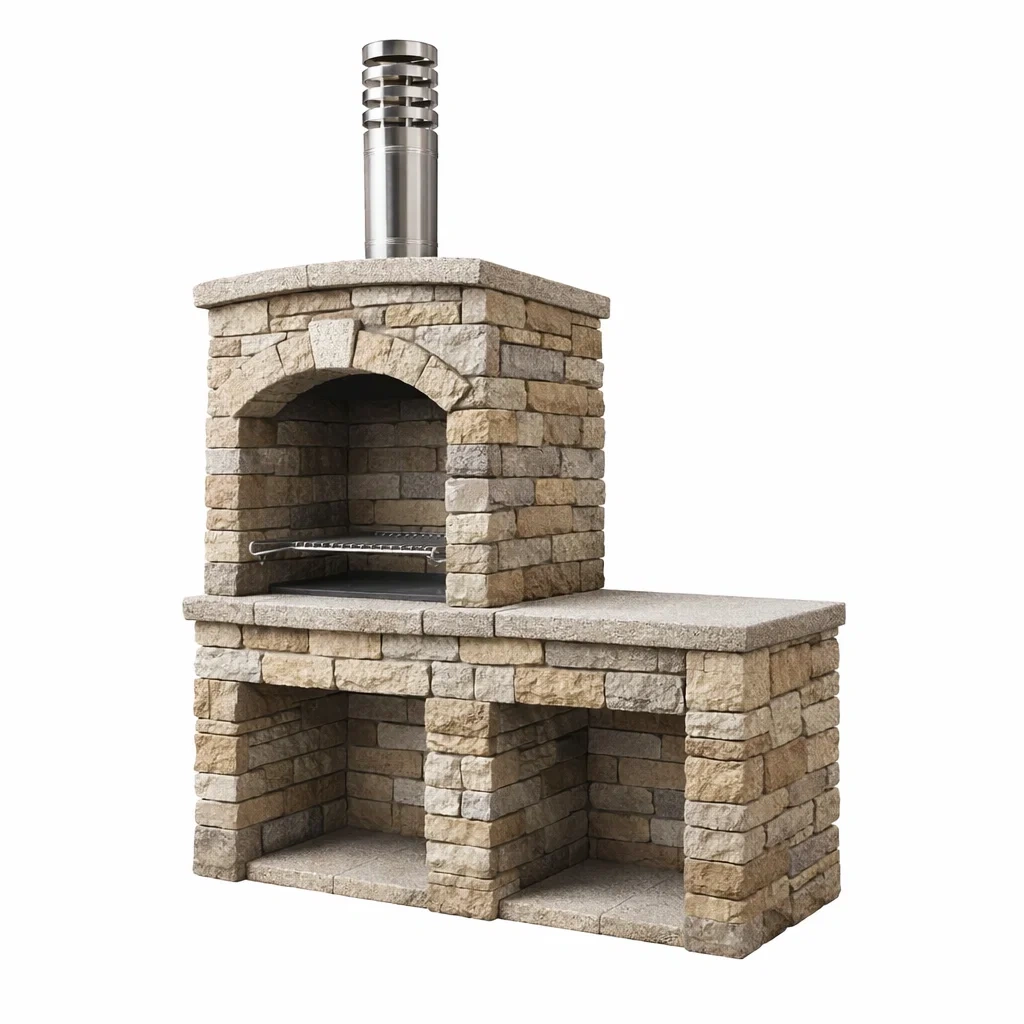 Matériau : Structure en pierre, cheminée en acier inoxydable.